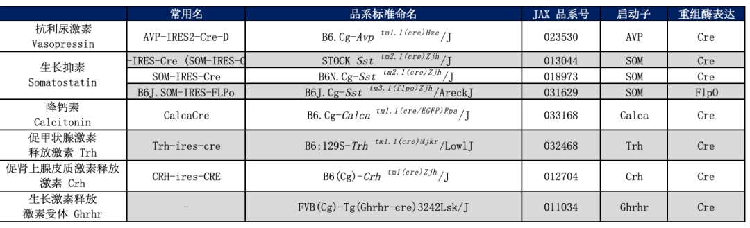 3.标记神经内分泌相关神经元的Cre品系
