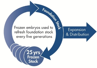 - 在种群扩繁早期,大量冷冻保存胚胎、精子,并定期复苏以更新繁育对