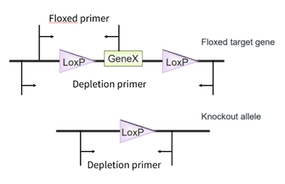 我们以基因敲除为例,介绍 Cre-lox 小鼠的相关鉴定。首先需要鉴定小鼠是否为目标基因型。cKO小鼠的目标基因型是 Cre/+; flox/flox,此时同时使用原始 Cre 品系和 floxed品系的基因型鉴定方法即可。需要注意的是,如果使用了全身表达Cre,则需重新设计floxed基因敲除后的引物方可实现鉴定。