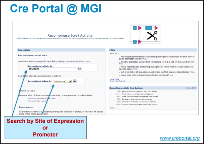 如果以上没有您需要的Cre小鼠,还可以通过MGI的 Cre Portal (www.creportal.org) 网页进行搜索, (图 6)。