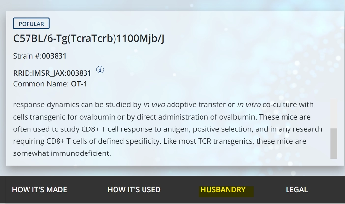 以strain#: 003831为例,在进入小鼠品系详情页面后,选择Husbandry - genotyping protocol,即可查看该品系基因鉴定的方法(如下图)。