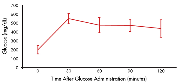 图 3. 8 周龄时葡萄糖耐受不良。对 8 周龄 TALLYHO/JngJ 雄性小鼠进行口服葡萄糖耐量试验 (OGTT)。数据为 10 只小鼠的平均值加减标准差。