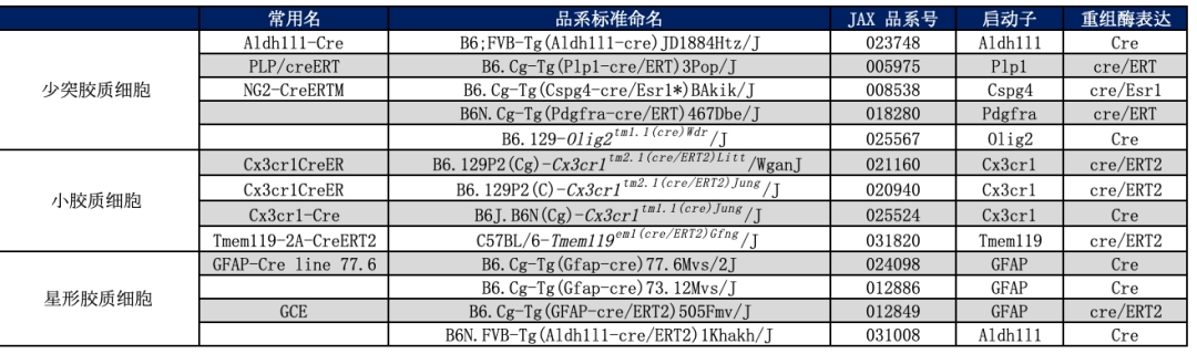 5. 常见的胶质细胞Cre品系
