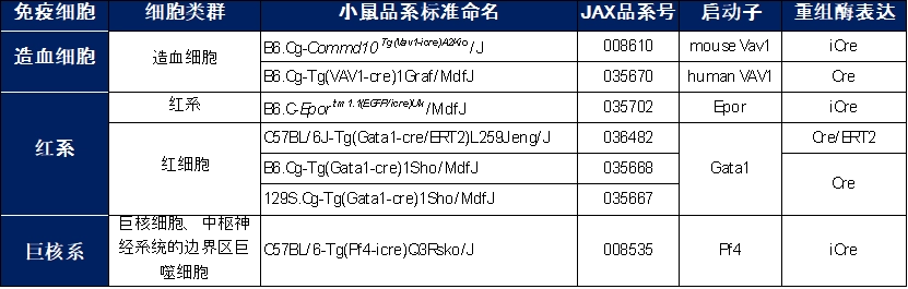 3. 常见的其他血细胞Cre品系