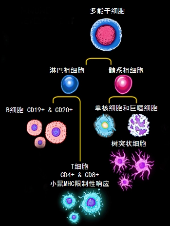 NSG™-SGM3小鼠以NOD.Cg-Prkdcscid Il2rgtm1Wjl/SzJ(NSG™)为背景培育而成。与其它NSG™相近品系一样,NSG™-SGM3小鼠缺乏成熟的T细胞、B细胞和功能性NK细胞,并且缺乏小鼠细胞因子信号。这些是支持人类CD34+造血干细胞适合和稳定植入的必要特征,正因如此,NSG™小鼠成为了众多异种移植研究项目的优秀长寿宿主。