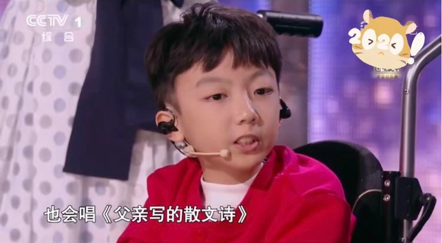 中央电视台综合频道在2020年的一档节目中,请到了SMA患儿果果,他在现场唱起《父亲写的散文诗》,阳光天使般的声音清脆明亮。