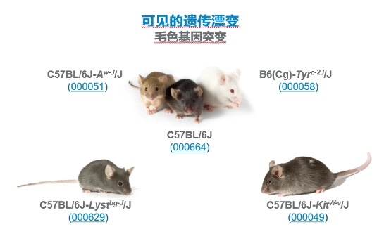 C57BL/6小鼠出现的多种毛色,就是一种“看得见”的遗传漂变;除此之外,还有很多“看不见”的遗传漂变,例如 C57BL/6N 亚系中出现的视网膜变性 (Crb1rd8 突变)。现有50多种不同的C57BL/6亚系,包括C57BL/6J, C57BL/6N, C57BL/6Nmg, C57BL/6JKun和C57BL/6JolaHsd等,它们在遗传和表型上都已出现差异,使用不同的亚系开展实验很可能会得到不同的结论,也为数据的延续性带来风险。因此,充分了解所用小鼠的遗传背景,精确到亚系,并据此选择合适的对照对科学研究而言很重要。